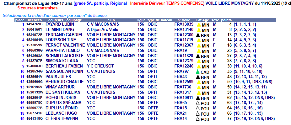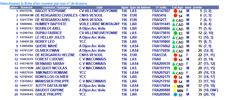 Belle 8éme place de Lara avec 5 manches solides ou elle est très régulière (7-7-6-8-8) et Charlie (12e) qui n’as fait que trois manches.